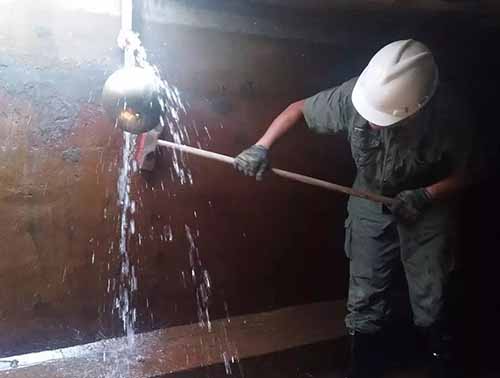 在清洗水箱的過程中,消毒人員須帶護眼鏡、口罩,如在水箱內感到